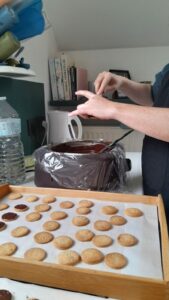 Il peut faire froid chez vous, mais au-delà de 18°C, cela deviendra compliqué de tempérer correctement le chocolat; veillez donc à ne pas surchauffer avant mon arrivée. Pour cette même raison, les ateliers n’ont pas lieu en période estivale.